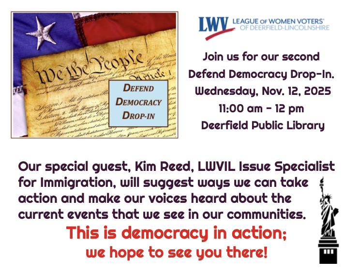 We held our second Defending Democracy Drop-In on Nov. 12 where we learned about Issues surrounding immigration enforcement and wrote postcards to federal legislators.