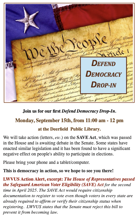 Members met to learn why the SAVE Act will make it harder for many people to vote. Then, we wrote letters to our federal legislators, urging them to defeat this voter suppression bill.